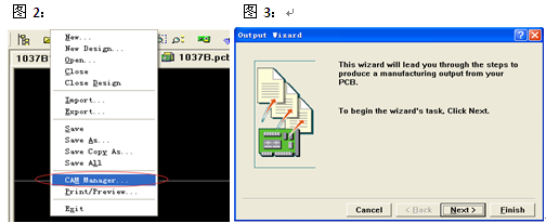 2、 開始轉Gerber,在File→Cam Manager(快捷方式:F+M)(圖2),出現Output Wizard輸出 Gerber向導(圖3):