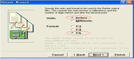 5、 到這一步的時候,設置的單位和格式一般按照普通“Inches英制”、“2:5格式”導出數據(下圖7),設置好后點Next進行下一步: