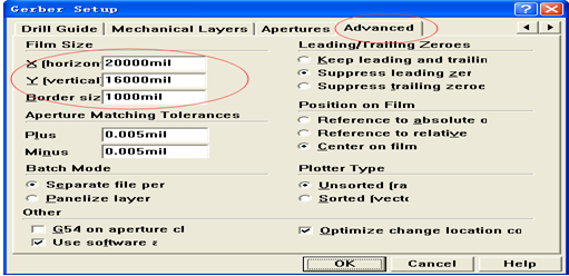 出現對話框后選擇“Advanced”,在紅圈內的三個數值加多1-2個0后點OK就可以了,再重新按F9導出gerber。