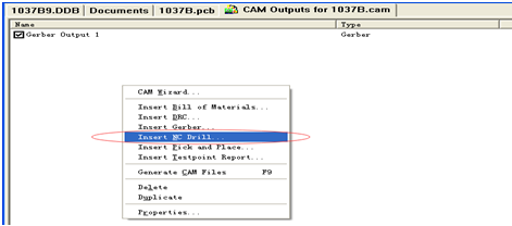 1、上面完成后在出現的頁面上鼠標右擊,出現菜單欄,選“Insert Nc Drill”輸出鉆帶;